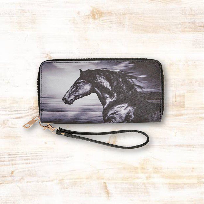 This is the perfect gift for all fashionable Equestrians! This zippered wallet with wristlet includes three inside compartments along with two bill fold slots and eight credit card slots. There is also plenty of room for a mobile phone!